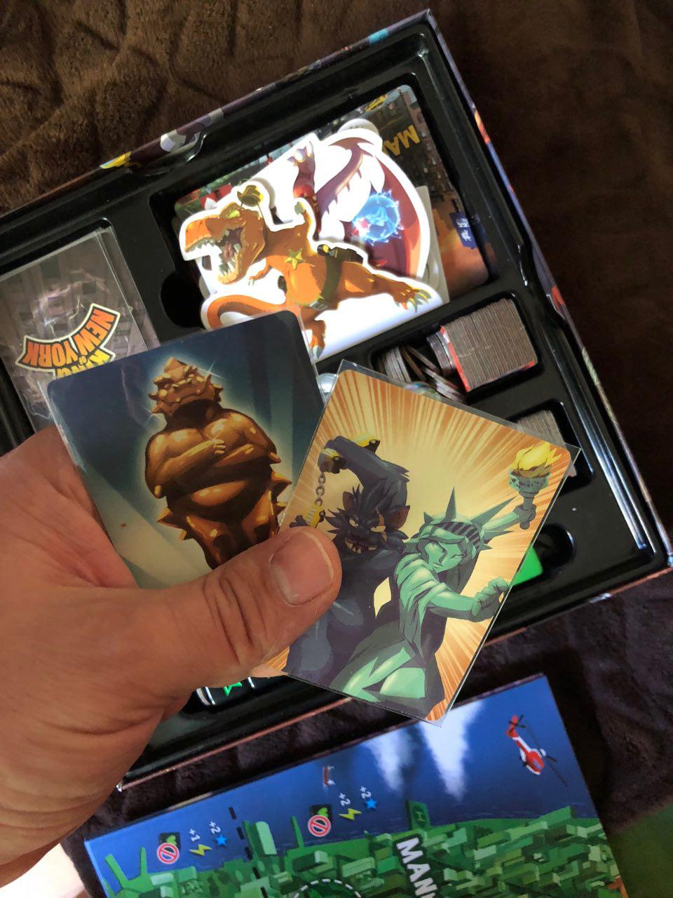 King of New York- комплектация полная, играли всего 3 раза, в нашей компании не пошла. Карточки в премиум протекторах MayDay. Сверху на коробке есть не большие линии их видно когда на свет ставишь и присматриваешься, в остальном всё в новом состоянии.
