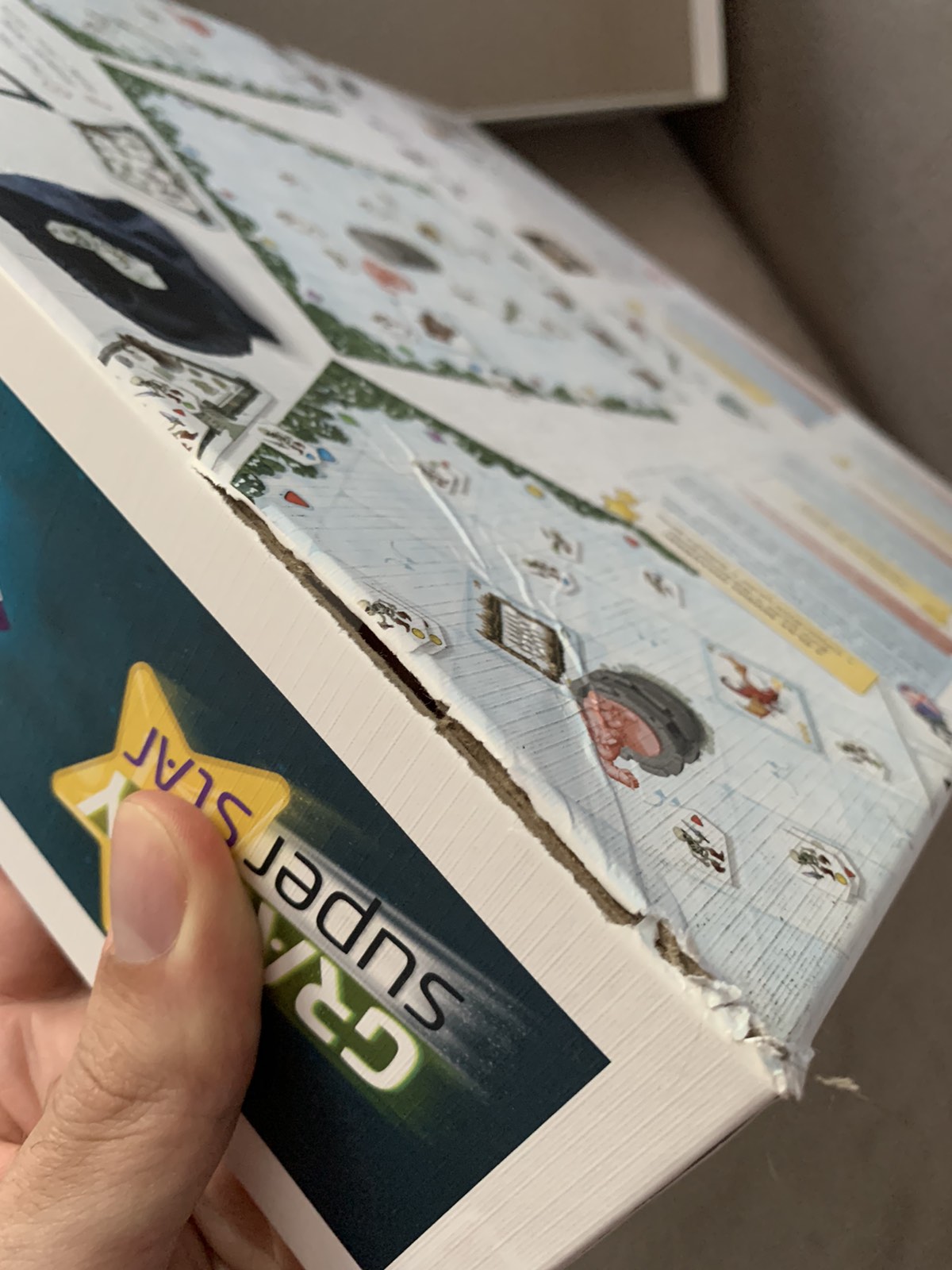 жаль он не проверил прямо там, потому что визуально даже дополнительная упаковка была целой. Уже дома он обратил внимания, что эта самая доп упаковка была таки помята. Возможно коробку бросили и от самого удара внутри порвалась коробка от игры, а на упаковке осталась только вмятина.