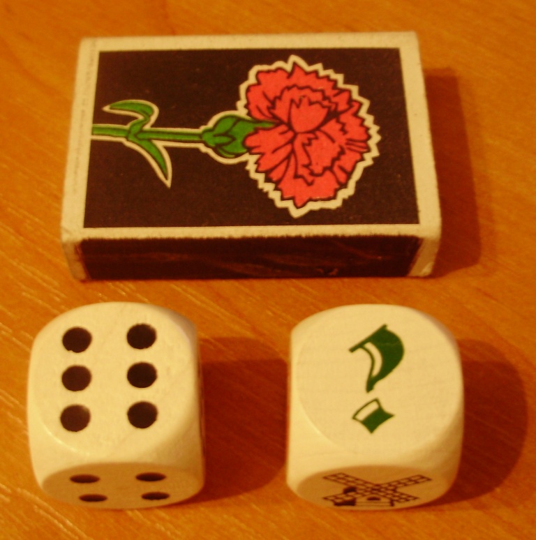 Прошу прощения! Кубики остались прежними. Просто фишки мельницы и всадника добавились. Раньше они были на брусочках изображены вроде, да?